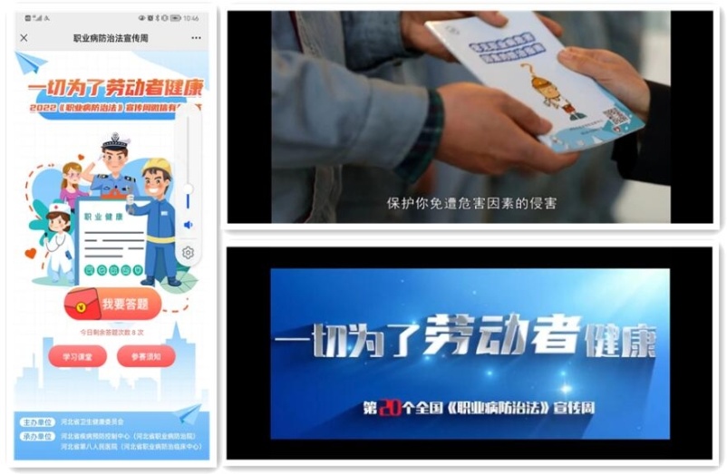 03 推廣《職業(yè)病防治法》宣傳周活動(dòng)展示平臺(tái)及微信答題活動(dòng),在平臺(tái)里員工可以觀看宣傳周主題宣傳片、職業(yè)健康優(yōu)秀作品展等豐富的視頻內(nèi)容,也可以通過(guò)[微課堂]及[學(xué)習(xí)課堂]板塊學(xué)習(xí)職業(yè)健康及《職業(yè)病防治法》基本知識(shí)。