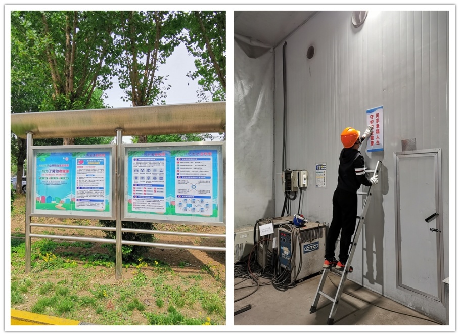 01 在生產(chǎn)基地宣傳欄張貼職業(yè)病防治宣傳海報(bào)、在車間和職業(yè)危害崗位張貼職業(yè)健康宣傳板,向廣大員工展示此次宣傳周活動(dòng)主題和職業(yè)病防治知識(shí)。