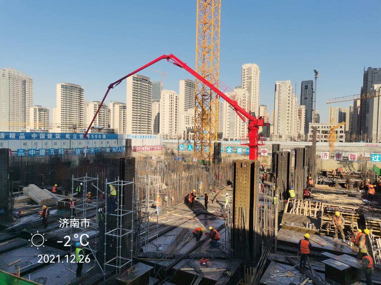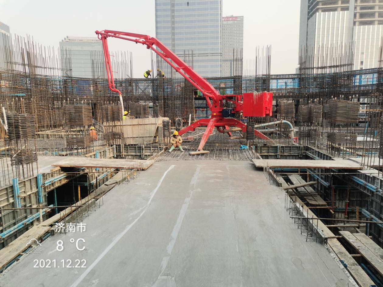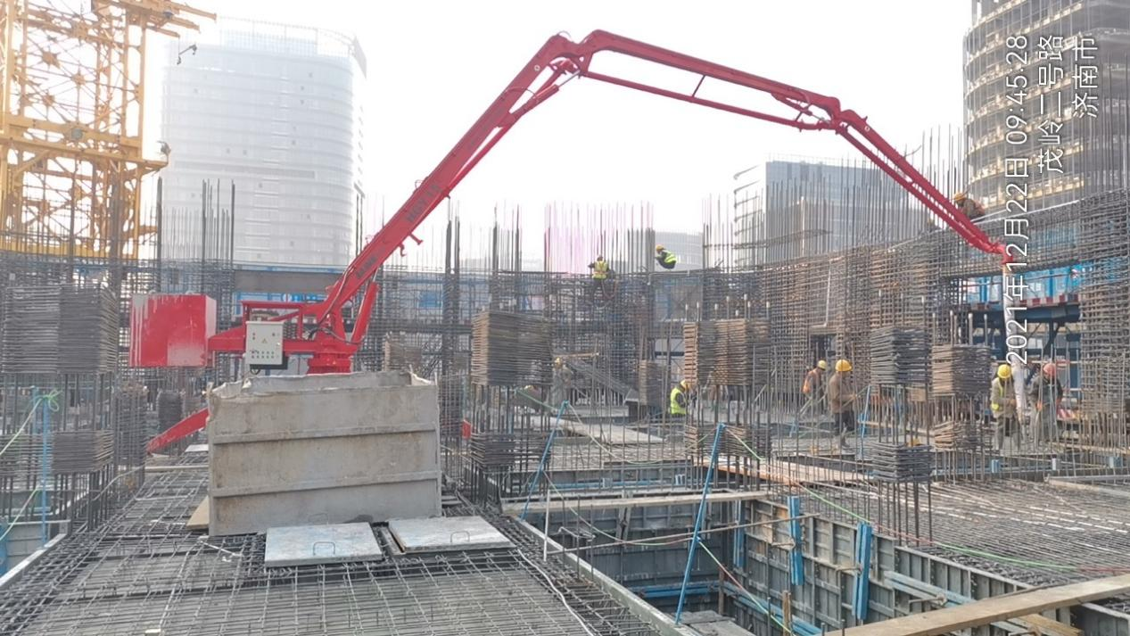 中信泰富·濟南尊超高層項目位于濟南CBD核心區(qū),新濼大街以北,茂嶺三號路以西,綢帶公園以東,占地面積2.13萬平方米,總建筑面積28.23萬平方米。項目共建設2棟商務樓及大型商業(yè)裙房,其中T1塔樓地上64層,總高度326米;T2塔樓地上23層,總高度123米。項目建成后,將成為濟南又一座突破300米的超高層建筑。該項目使用的布料機為凱博科技生產的HGY32樓板爬升式布料機。