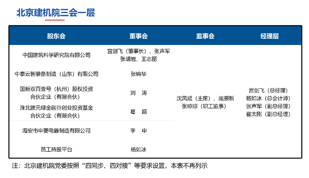 ? ? 2020年12月,北京建機院通過上海聯(lián)合產(chǎn)權(quán)交易所成功引入中泰云智裝備制造(山東)有限公司、國新雙百壹號(杭州)股權(quán)投資合伙企業(yè)(有限合伙)、淮北建元綠金碳谷創(chuàng)業(yè)投資基金合伙企業(yè)(有限合伙)、海安市申菱電器制造有限公司等4家民營企業(yè)和金融資本,同步實施員工持股,募集資金近4億元。