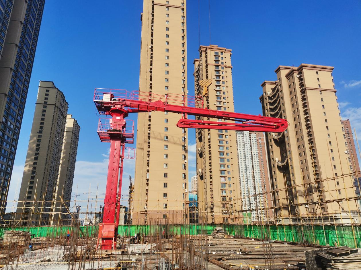 廊坊凱博建設(shè)機械科技有限公司生產(chǎn)的?JAINE建研?HGY32和HGY24電梯井爬升式布料機成功在沈陽旭輝鉑悅·公望項目中順利安裝并投入使用。